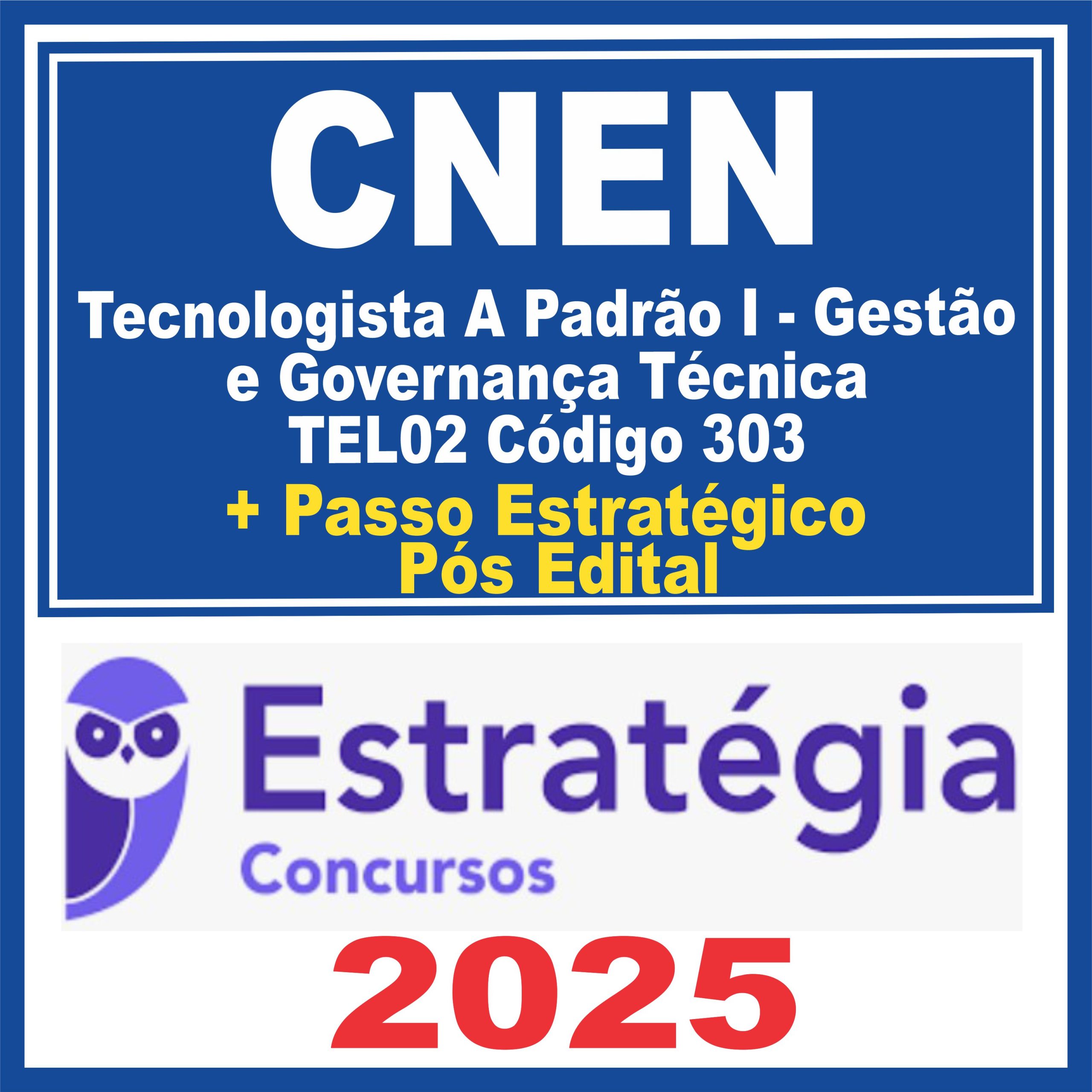CNEN (Tecnologista A Padrão I – Gestão e Governança Técnica – TEL02 Código 303) Pacotaço – Pacote Teórico + Pacote Passo Estratégico – 2025 (Pós-Edital)
